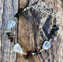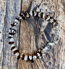 • Pretty 925 Sterling Silver 65cttw Raw Clear Quartz and Smokey Quartz Bracelet