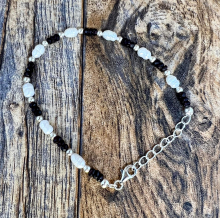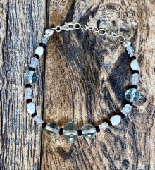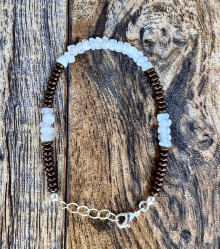 • Petite .925 Sterling Silver 35cttw Copper Hematite and Hand Cut Moonstone Bracelet