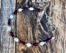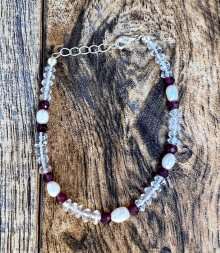 • Gorgeous, Fancy 925 Sterling Silver Faceted Garnet & Pearl Bracelet