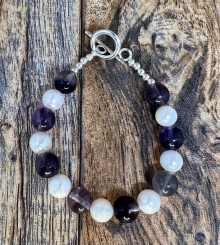 • Fancy .925 Sterling Silver 100cttw Fluorite and Pearl Bracelet