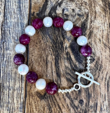 • Gorgeous, Fancy .925 Sterling Silver 100cttw Dyed Ruby and Pearl Bracelet