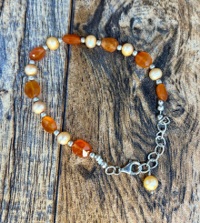 • Fancy 925 Sterling Silver 40cttw Faceted Carnelian and Pearl Bracelet