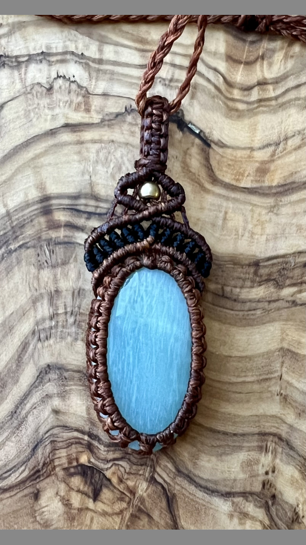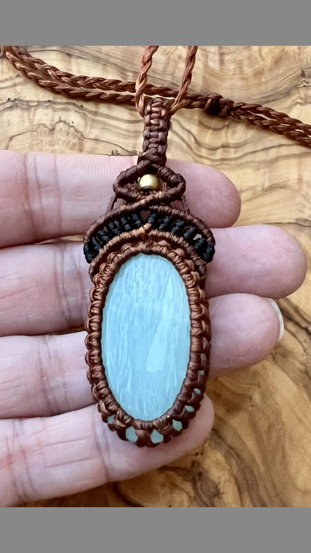 Bound to a handmade macramé Amazonite pendant