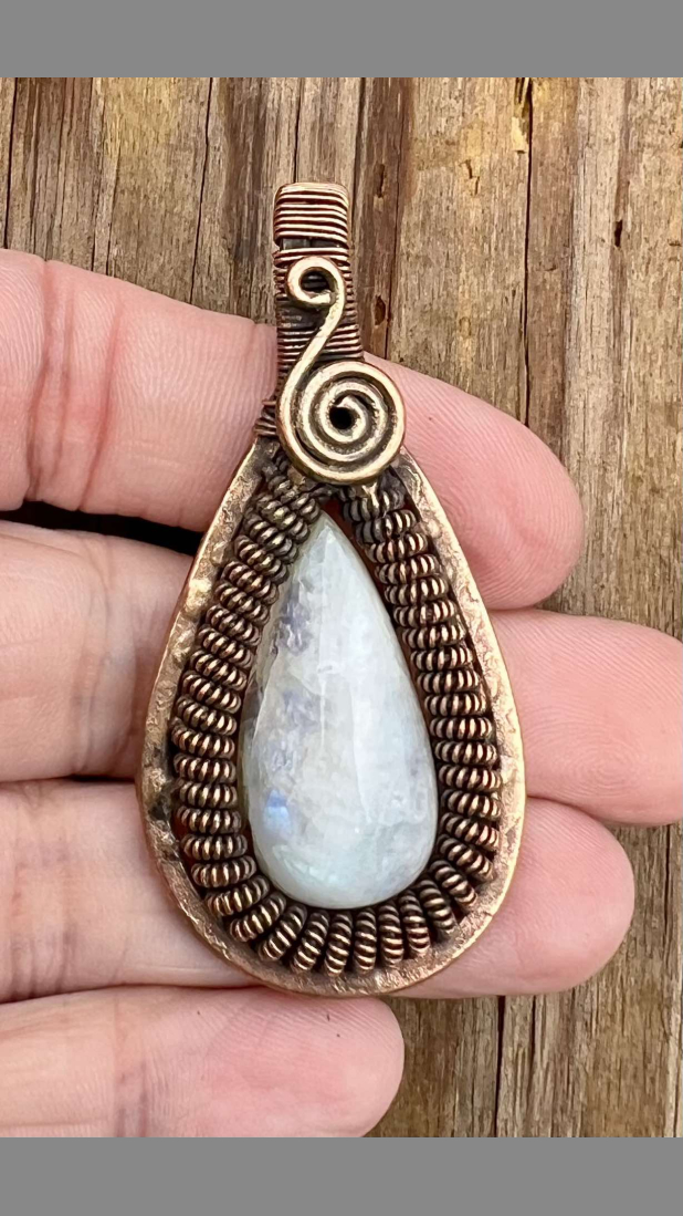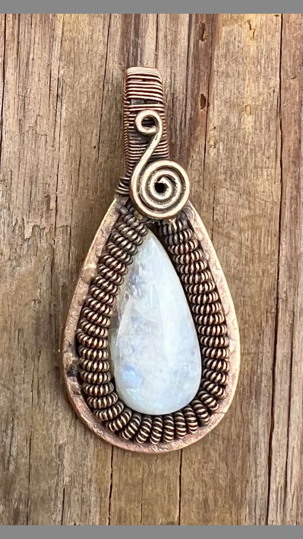 copper wire wrapped moonstone pendant