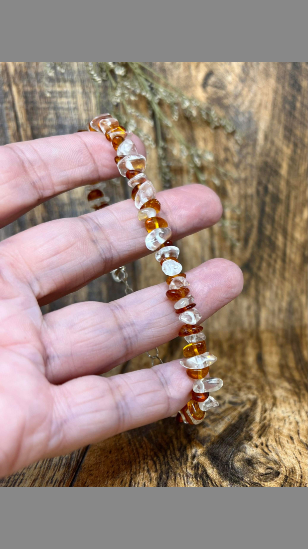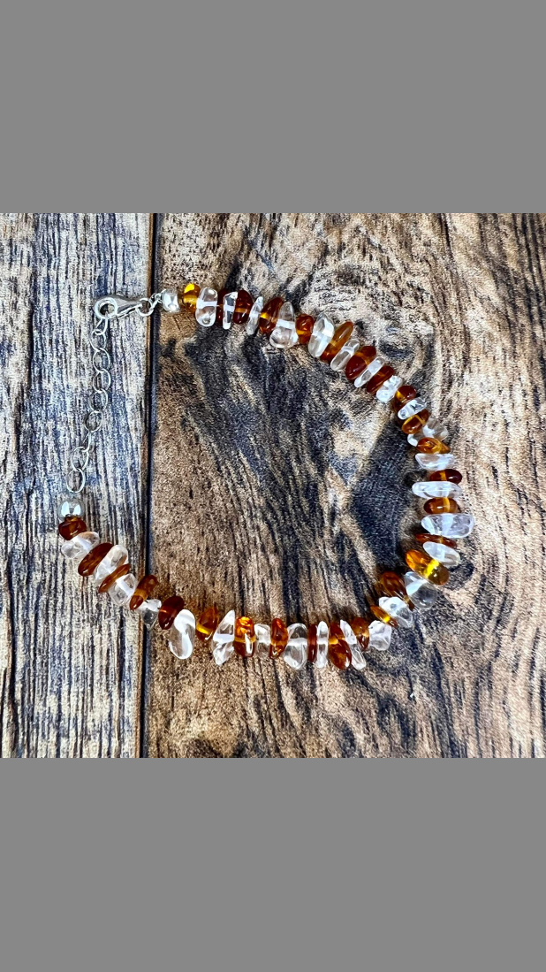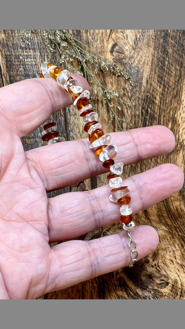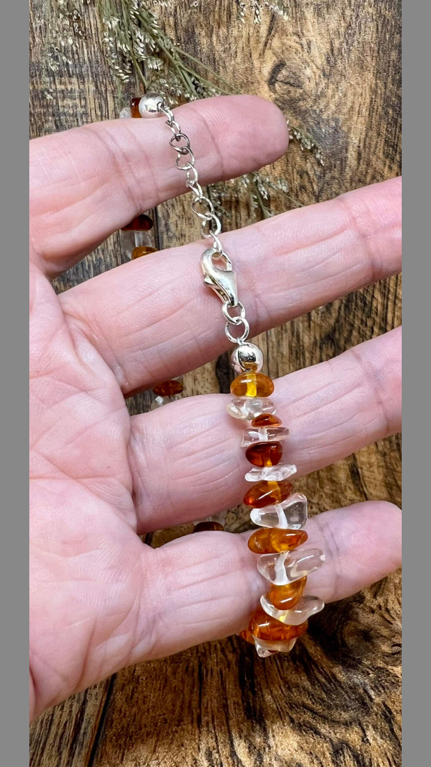 Item: Gorgeous, Fancy 925 Sterling Silver 35cttw Amber and Raw Clear Quartz Bracelet