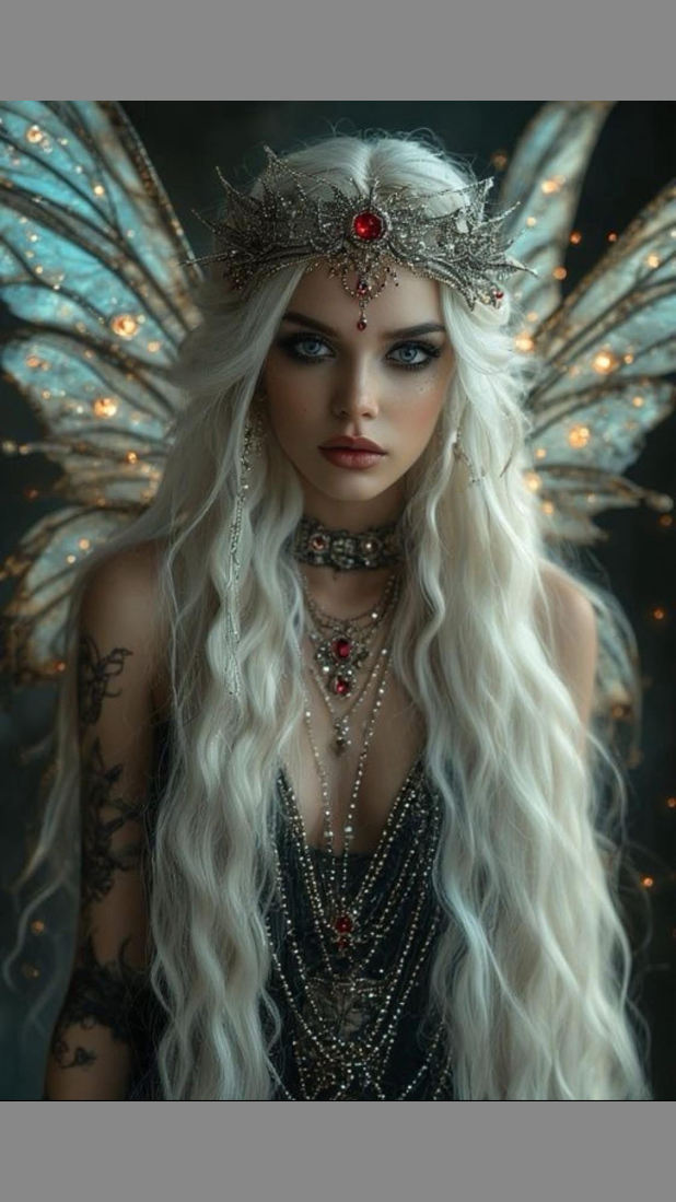 She is an Ancient Fairy princess, born 3,201 years ago under a comet that split the night into two colors. Wyrralyn is a creature of gray arts: neither devoutly light nor wholly shadowed, she walks the seam between mercy and necessary cruelty. That place—where compassion meets consequence—is where her power lives.