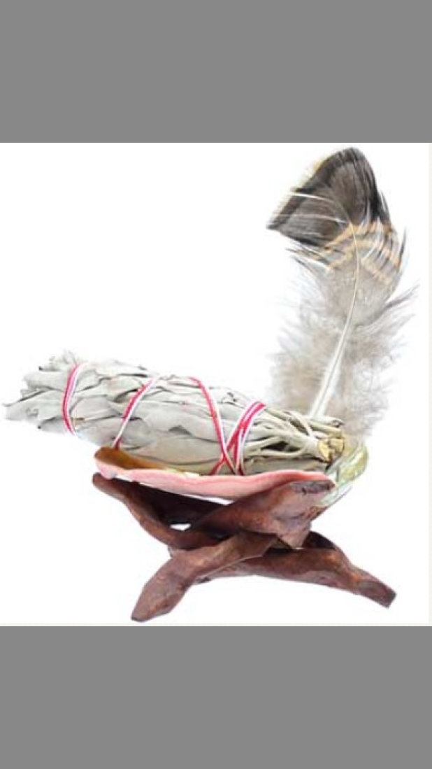 This little kit containing everything you need for an altar or ritual smudging. Comes with a small wooden stand, abalone shell, feather, and 3” white sage smudge stick. Made in U.S.A.